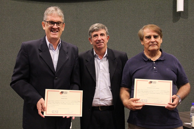 Ao final do evento, o palestrante recebeu um certificado de participação da Escola de Contas.