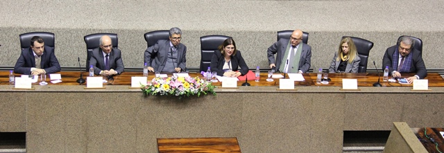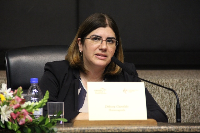 Composição da mesa para a homenagem à professora Débora Garofalo
