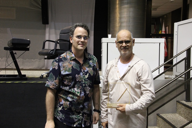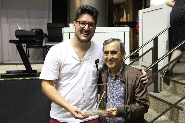O regente Luís Anselmi recebeu homenagem do professor de Artes Plásticas Universidade da Bahia, José Dirson Argolo