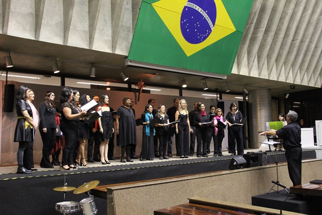 Sob a regência do maestro William Guedes, o Coral do TCMSP fez a abertura do encontro e embalou o público com o ritmo latino-americano, incluindo no repertório canções como: “Soy Loco Por Ti América”, de Gilberto Gil; “Bessame Mucho”, da mexicana Consuelo Velázquez; a tradicional canção cubana “Guantanamera”; “Capullito de Aleli”, do porto-riquenho Rafael Hernández; e encerrou com “Quizás, quizás, quizás”, do cubano Oswaldo Farrés.