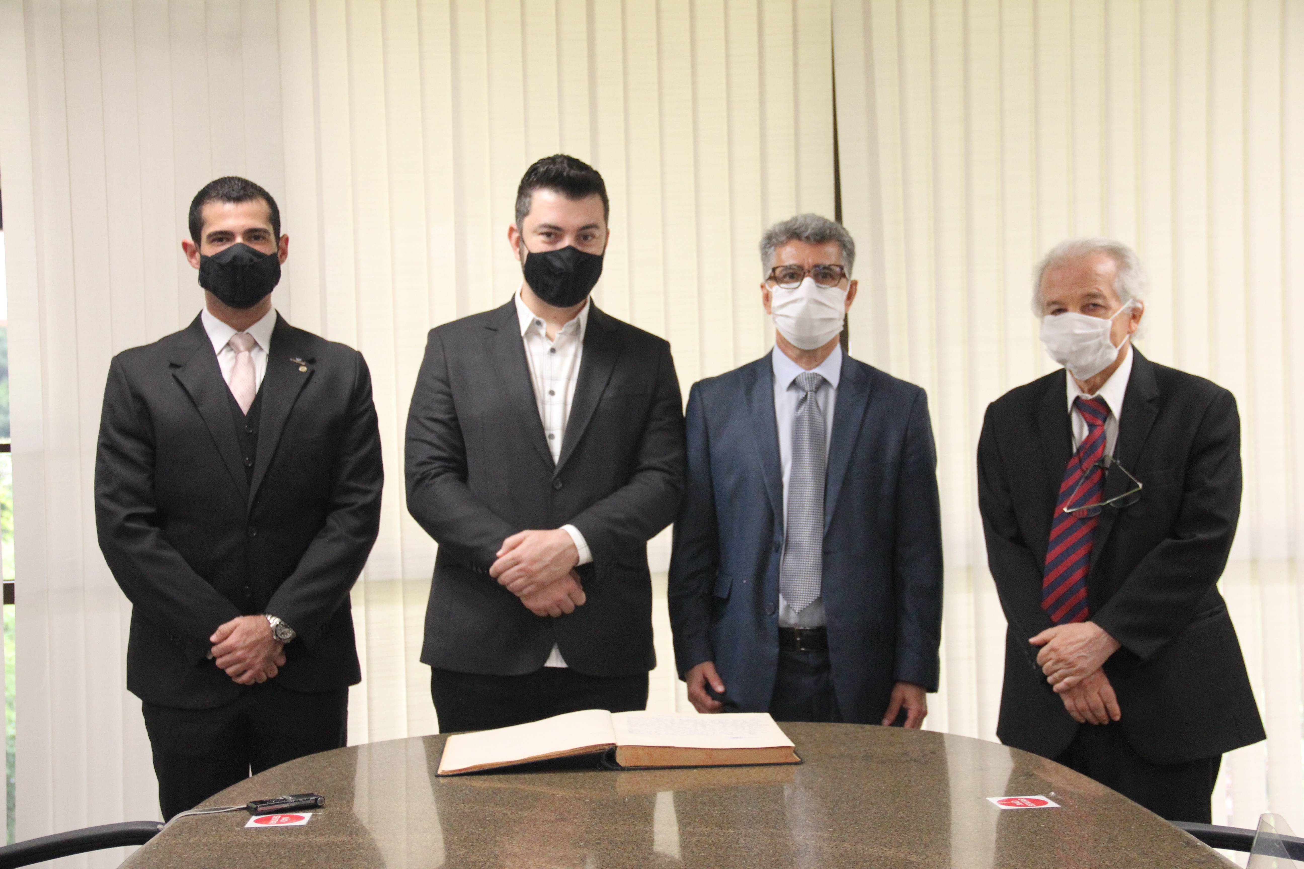 A solenidade aconteceu no gabinete da Presidência do TCMSP com a presença do secretário-geral, Ricardo Panato, da subsecretária-geral, Roseli Chaves, da chefe de gabinete da Presidência, Angélica Fernandes, do deputado federal, Alexandre Leite, do ex-conselheiro, Edson Simões, e do presidente da Corte de Contas, conselheiro João Antonio.