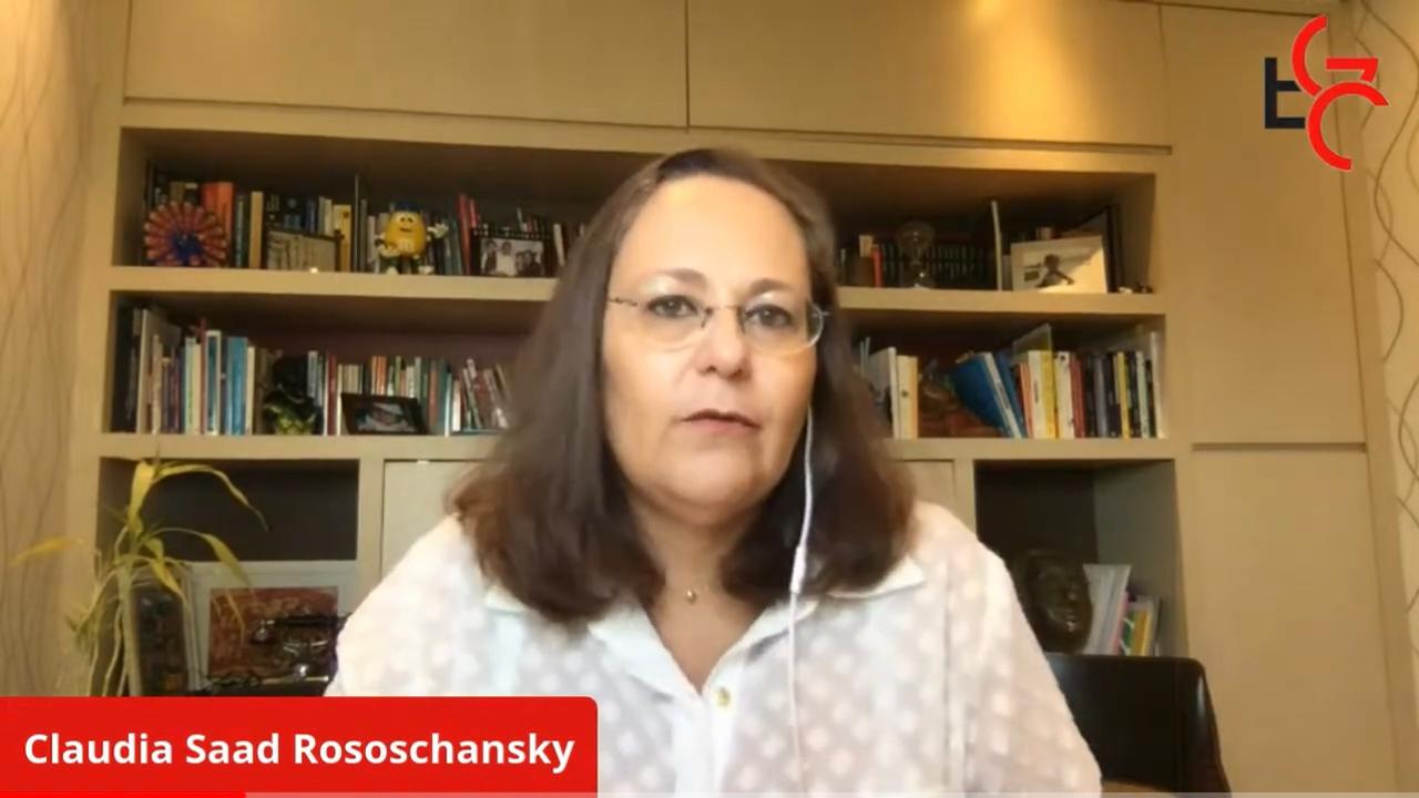 A palestrante convidada foi Claudia Saad Rososchansky, psicóloga com especialização em neuropsicologia, MBA e Mestra em Administração. Fundadora da consultoria Ampliar Talentos, atua como mediadora de Conflitos e Coach Executiva e de Carreira. É Professora e Coach da Fundação Dom Cabral, na pós-graduação e MBA, nas disciplinas de mediação de conflitos, mindset global e neuroliderança.