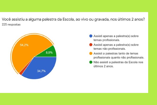 A pesquisa identificou que mais de 90% dos respondentes assistiram a palestras da instituição de ensino, ao vivo ou gravadas, nos últimos dois anos