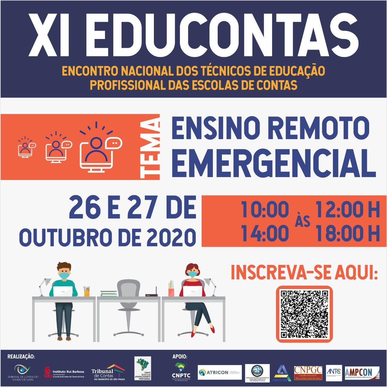 Nos dias 26 e 27 de outubro será realizado, com transmissão ao vivo, o XI Educontas - Encontro Nacional dos Técnicos de Educação Profissional das Escolas de Contas.